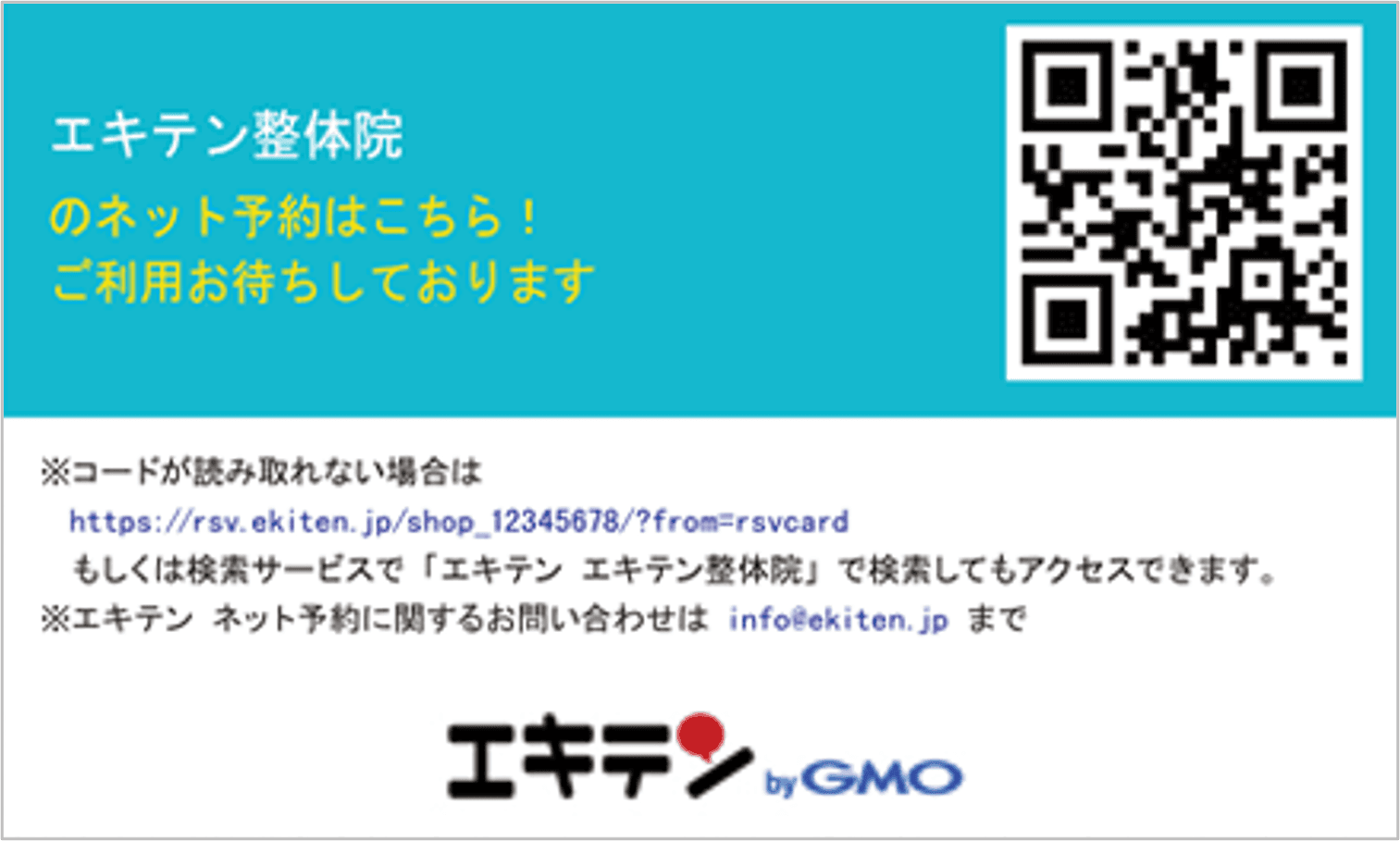 お客様が簡単に予約ができる便利なカードです。ぜひ、お客様に配布をしましょう!